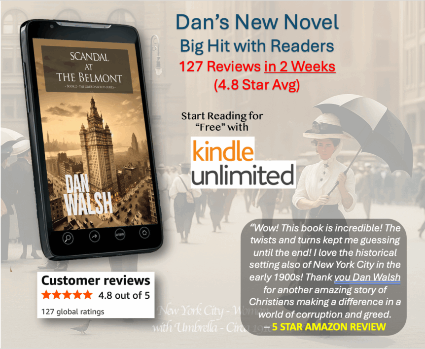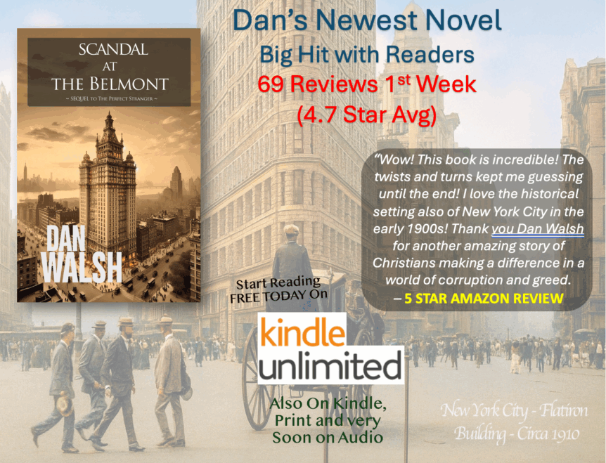 ⭐⭐⭐⭐⭐ THE REVIEWS ARE IN FOR DAN’S BRAND NEW NOVEL – 69 in 1 WEEK (4.7 avg)— Scandal At The Belmont came Out 7 DAYS AGO and is clearly a BIG HIT with Readers. SPECIAL THANKS to all those who took the time to leave a Review. Read a SAMPLE of them BELOW. It’s FREE for #KINDLEUNLIMITED members. Also Available on Kindle, …