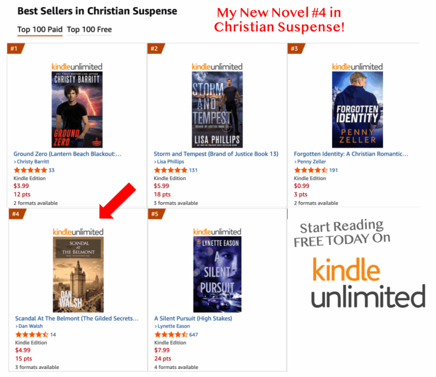 ⭐🔷⭐ EXCITED ABOUT THIS – MY BRAND NEW NOVEL #4 IN CHRISTIAN SUSPENSE— Scandal At The Belmont — Came Out 2 DAYS AGO and Already reached #4 on Amazon for Christian Suspense. And it’s #3 in Christian Historical Fiction. Also it’s ALREADY RECEIVED 30 Reviews in just 2 Days (82% are 5 Stars). It’s FREE for #KINDLEUNLIMITED members. Also Available on Kindle, …