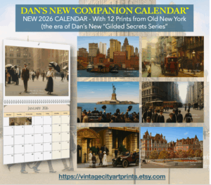 ALSO – CHECK OUT DAN’S NEW ETSY CALENDAR – Here’s a pic of the beautiful “companion calendar” Dan designed, inspired by his last 2 novels set in Old NY during the Gilded era (The Perfect Stranger and Scandal at the Belmont). Both are available on Etsy.